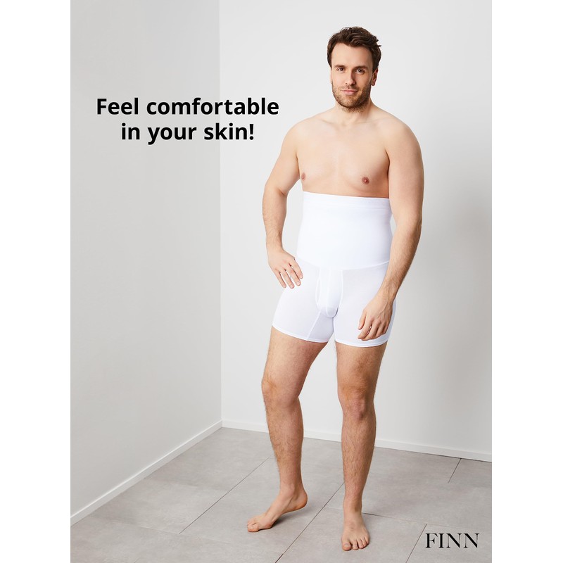 FINN Men's Shapewear Boxer Briefs with Tummy Control – Figure-Shaping Body Shaper Compression Shorts – High-Waisted Girdle Pants for Men Made from Cotton White L