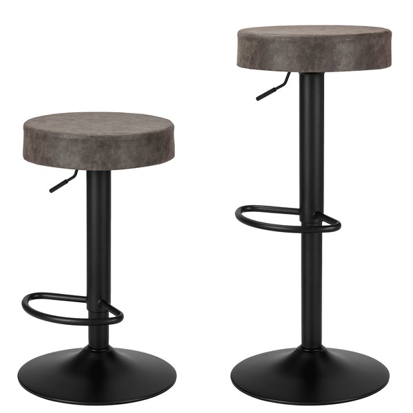 Finnhomy Bar Stools Set of 2 Counter Height, Swivel Barstools with Footrest and Backless Round, Height Adjustable Modern Bar stools for Kitchen, Vintage Leather, Retro Grey