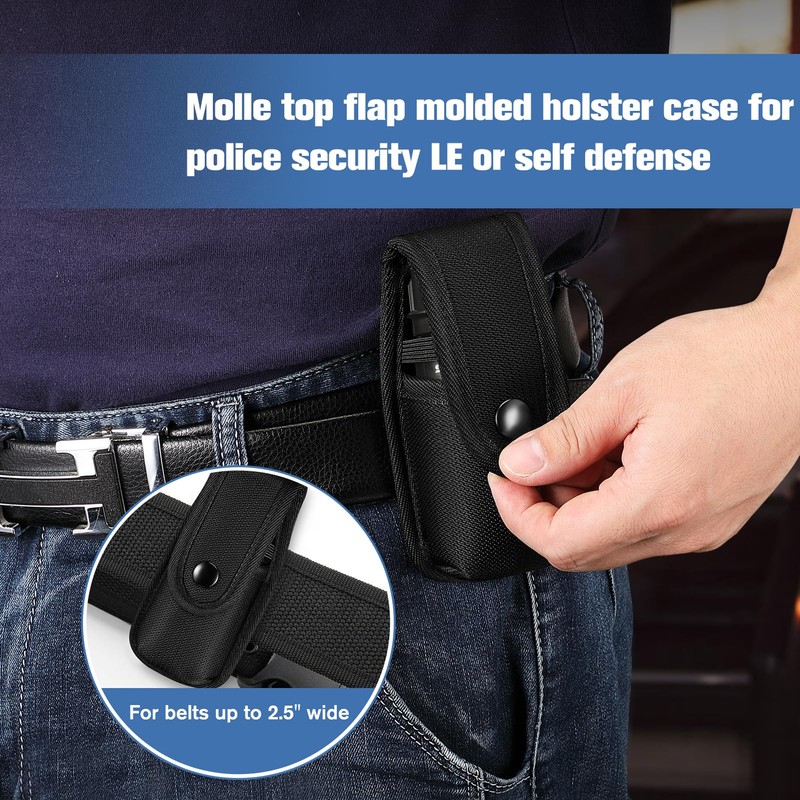 - High-quality pepper spray holder was built for duty belts and MOLLE attachments, ensuring that your equipment is secure but readily available when you need it most. The belt loop on the back can be attached to most duty belts up to 2.5’’ in width.