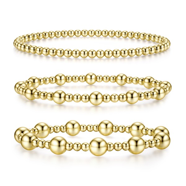 - 【Stackable Gold Bracelets for Women】- Gold beaded bracelet sets includes 3pcs/5pcs gold bead bracelet which stacks well with all bracelets. Beaded Bracelets are a fun way to spice up any outfit, you can mix and match, stack, or go the simple route and only wear one.