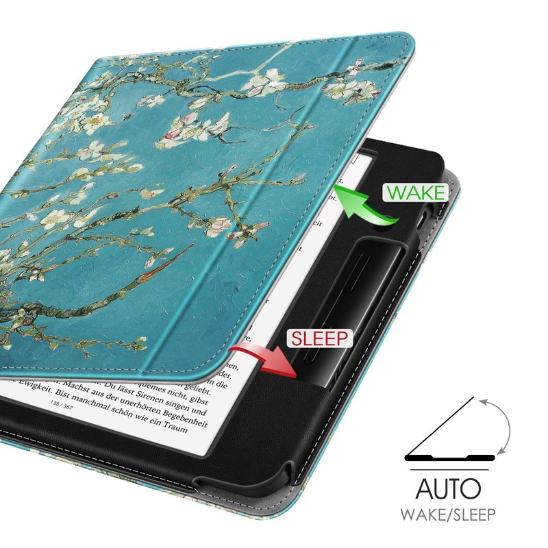 Fintie Case Compatible with Tolino Vision 5 2019 / Kobo Libra H2O - Kickstand Protective Case with Card Slot, Wrist Strap and Auto Sleep/Wake Function, Almond Blossom