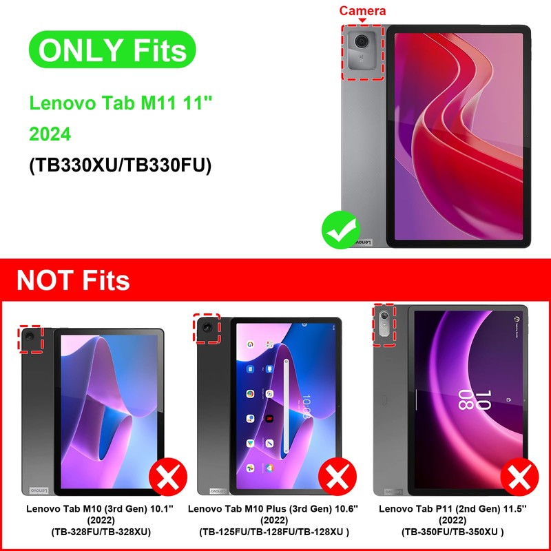 • Compatibility - Specially designed for Lenovo Tab M11 Tablet 11 inch (TB330XU/TB330FU) 2024. Not suitable for Lenovo Tab M10 10.1 inch. Please check the model of your tablet before purchasing.