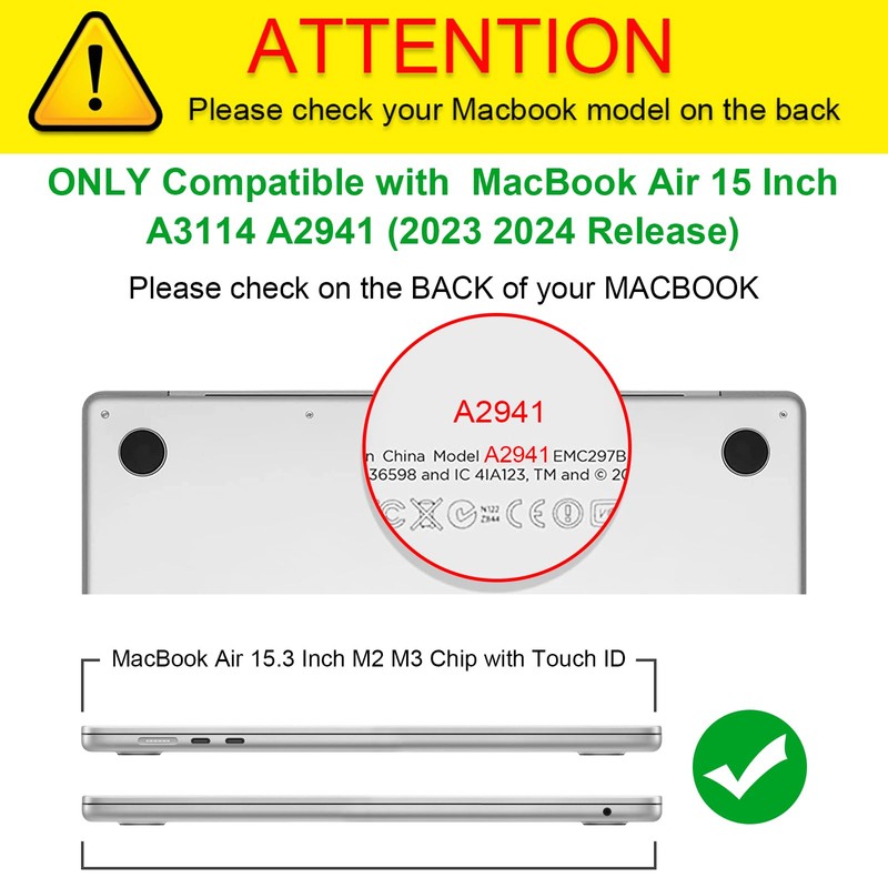 - Specifically designed for MacBook Air 15.3 Inch A3114 A2941 (2023 2024 Release) M2 M3 Chip with Liquid Retina Display and Touch ID.