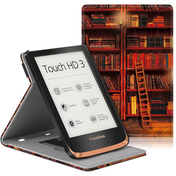 Fintie Case for Pocketbook Touch HD 3, Touch Lux 4/5, Basic Lux 2/3/4 and Pocketbook Color e-Reader - Multi Viewing Angle Case with Wrist Strap, Auto Sleep/Wake, the Library