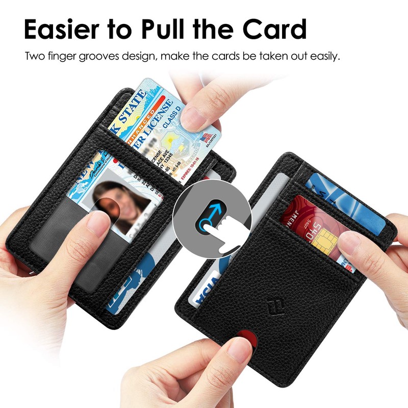 - Easy taking out of cards: two wide card slots with thumb openings make it easier to insert frequently used cards. No money clip, no coin compartment, no frills! For those looking for a replacement for a large wallet