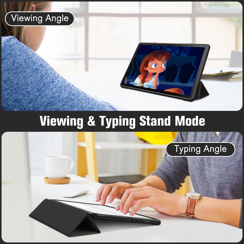 - Material de alta calidad: cubierta trasera rígida con parachoques de TPU flexible que protege tu tablet de golpes, caídas e impactos. La parte frontal interior de microfibra suave evita que tu tablet se raye. Y la cubierta trasera transparente puede mostrar el color de estilo clásico de tu dispositivo y el logotipo