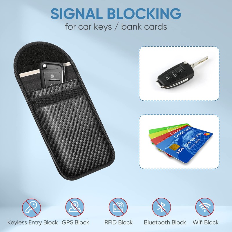 - Car protection: this Faraday bag provides a complete signal blocker for your vehicle key fob. It prevents thieves from amplifying your key fob signal and opening the car, and prevents your key fobs from being accessed remotely with keyless access.