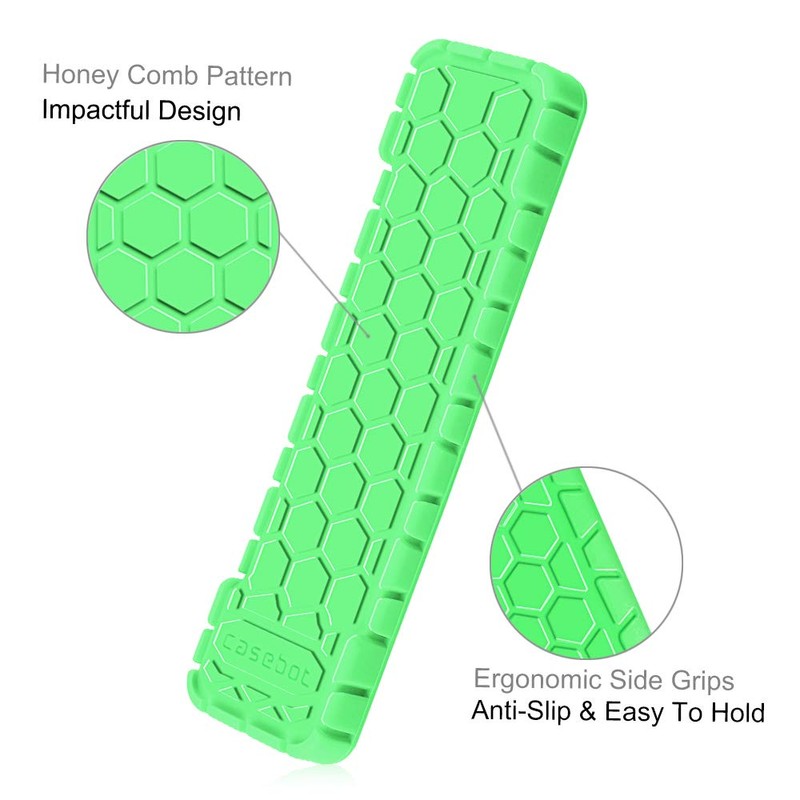 Fintie Protective Case for Apple TV 2 3 Remote Controller - CaseBot (Honey Comb Series) Light Weight (Anti Slip) Shock Proof Silicone Sleeve Cover, Green Glow in The Dark