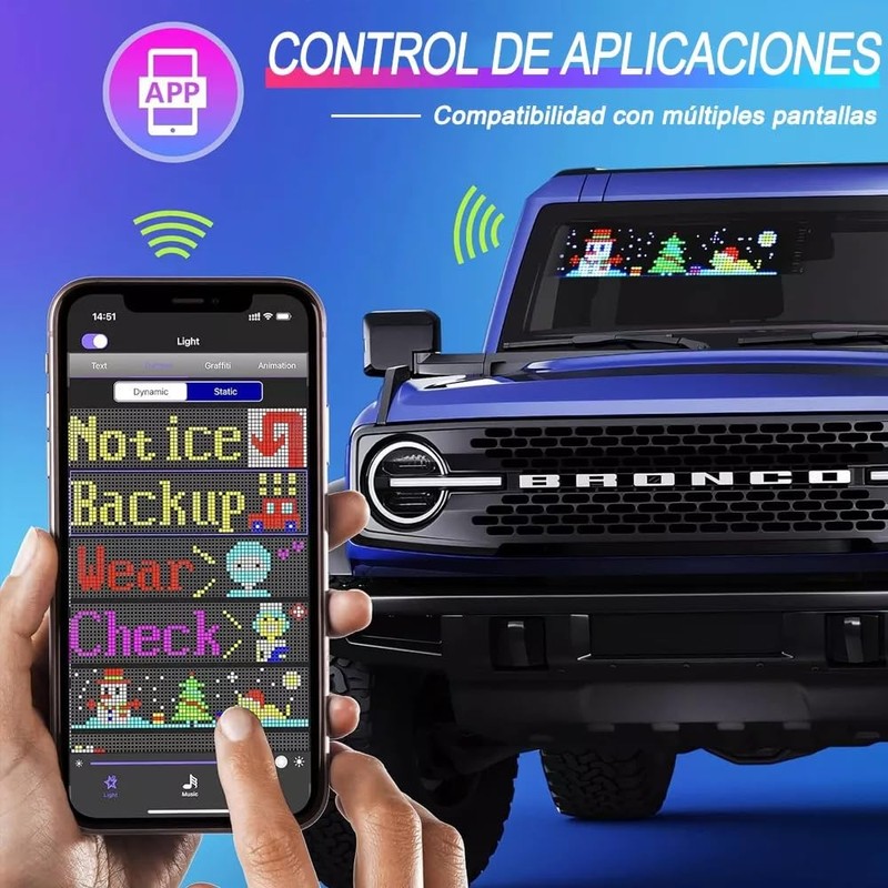 - Control de aplicación inteligente:Conecte la matriz LED a través de la aplicación, puede diseñar texto, patrones y animaciones de acuerdo con sus propias necesidades y escenas, y también puede ajustar el brillo y la velocidad para satisfacer perfectamente sus necesidades.