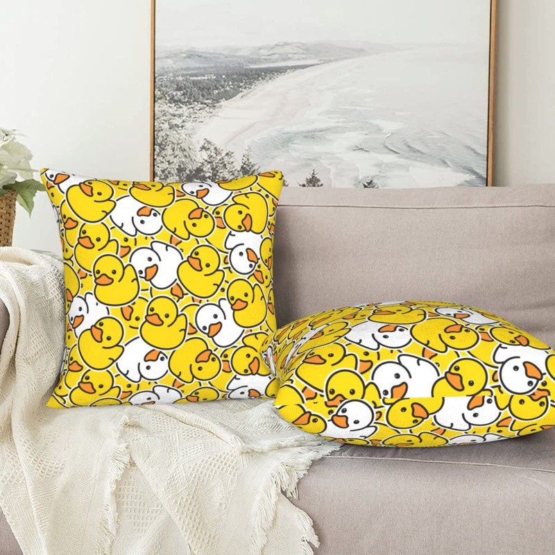 Fiokroo Cute Rubber Ducks Throw Pillow Covers Set of 2 Cartoon Duckies Pillow Cushion Cases Square Pillowcases for Sofa Bedroom Living Room Car, 16 X 16 Inch