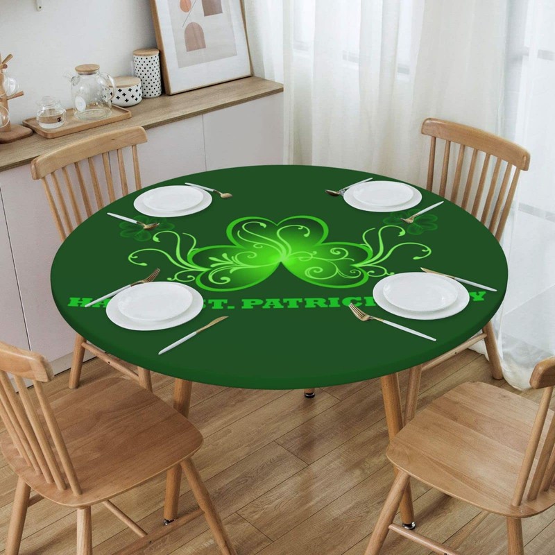 Fiokroo St. Patrick's Day Tablecloth with Elastic Edge, Round Table Cloth Washable Reusable Table Cover for Kitchen Dining Party Picnic, Small, Small (Suitable for 40-44 in)
