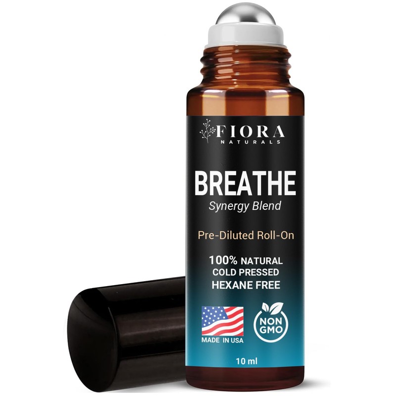 Fiora Naturals Breathe Essential Oil Roll-On Blend - 100% Pure Eucalyptus, Peppermint & Tea Tree Oil Aromatherapy Blend. Therapeutic-Grade - 10ml