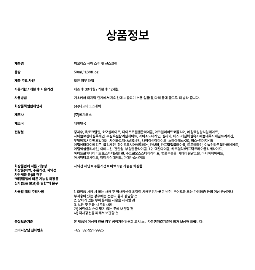 피오레스 퓨어 스킨핏 선스크린 50ml