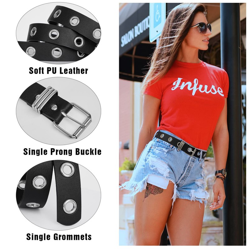 • STYLISH PU LEATHER BELT: Our grommet PU leather belt features a modern design, crafted with premium PU leather and adorned with metal eyelets. Simply wear it to instantly elevate your style