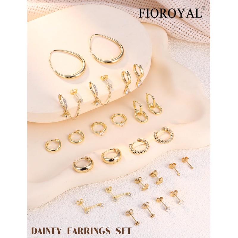 Enhance your style effortlessly with FIOROYAL’s 13-pair gold earrings for women—a must-have for every jewelry collection!
