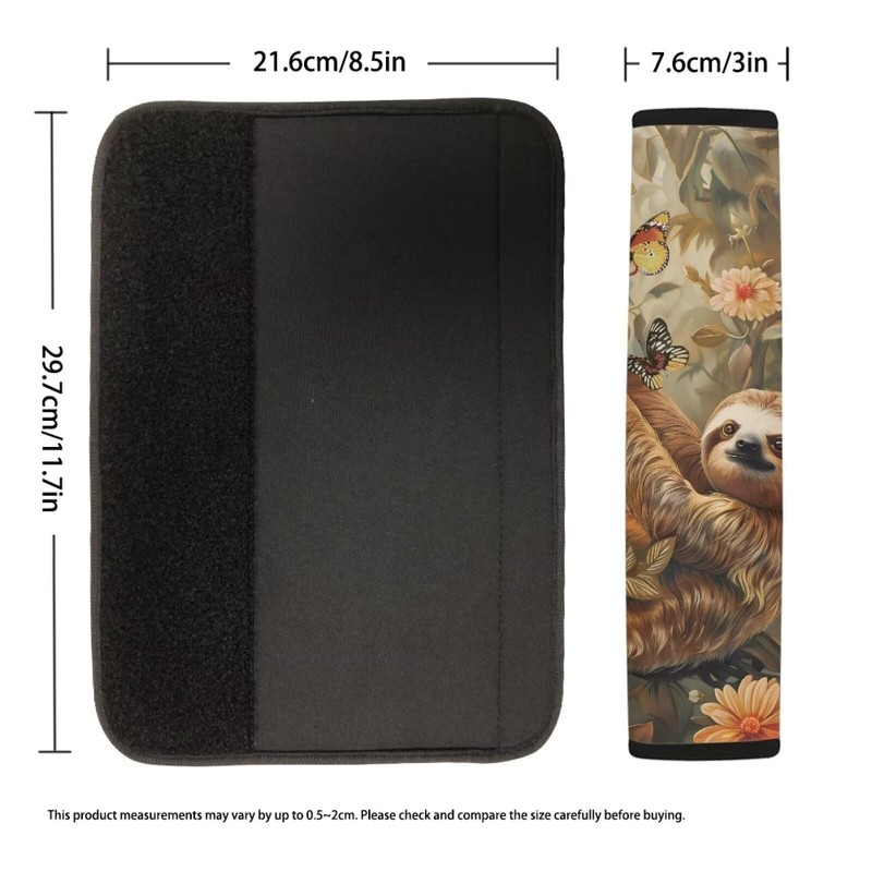 Fipuivrn Sloth Butterfly Pattern 2 Pack Car Seat Belt Cover, Daisy Palm Leaf Anti-Slip Seatbelt Shoulder Protection Comfort Seatbelt Shoulder Pad Release Stress to Neck and Shoulder