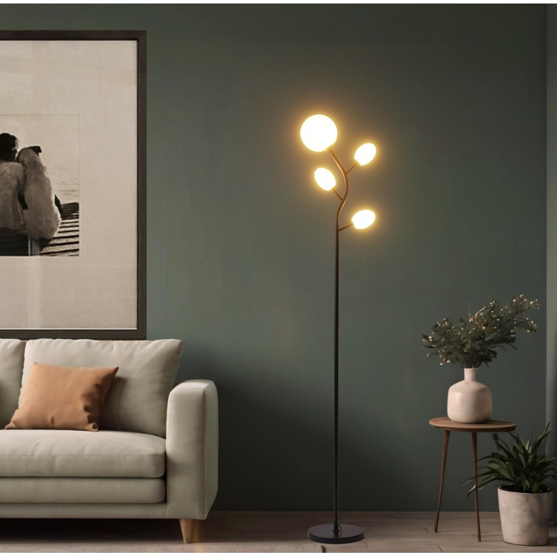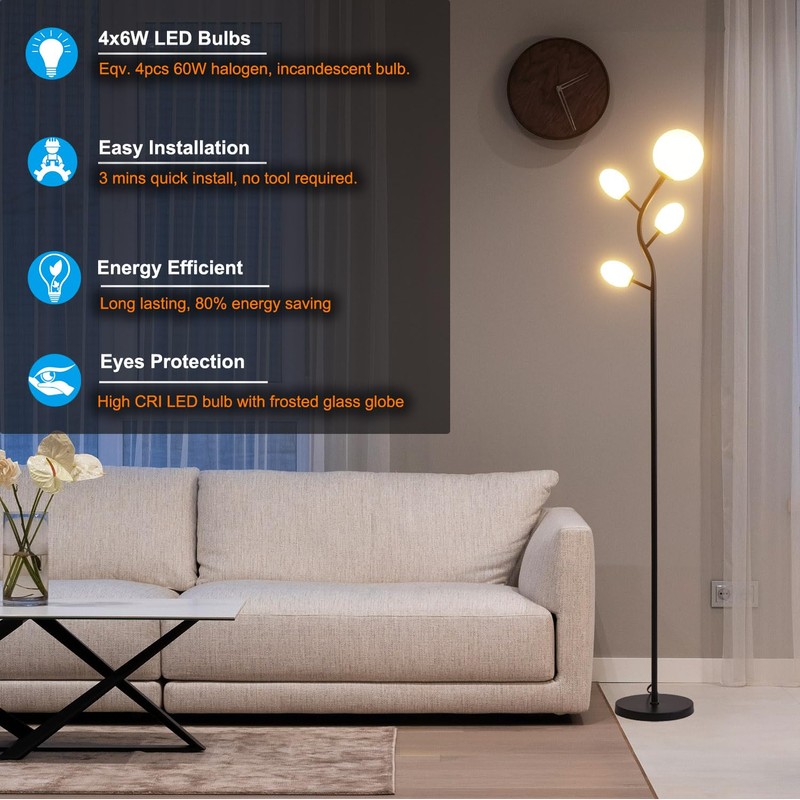 - Easy Installation: The modern black tree floor lamp assemble process is simple and quick, no more than three minute. lamp poles, base and globe just need screw together tools free, then plug in the led bulb and turn the switch on. Immediately bring your living room, bedroom or office to a next level.
