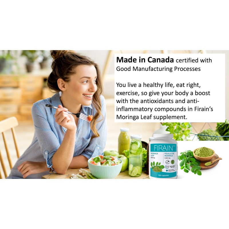 - MADE IN CANADA: Firain Moringa Leaf capsules are made in Canada with vegan-friendly, non-GMO and sugar-free ingredients. Our facility is Good Manufacturing Process (GMP) certified