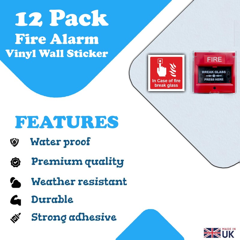 - Pack of 12: Fire Alarm Call Point Stickers - In Case of Fire Break Glass