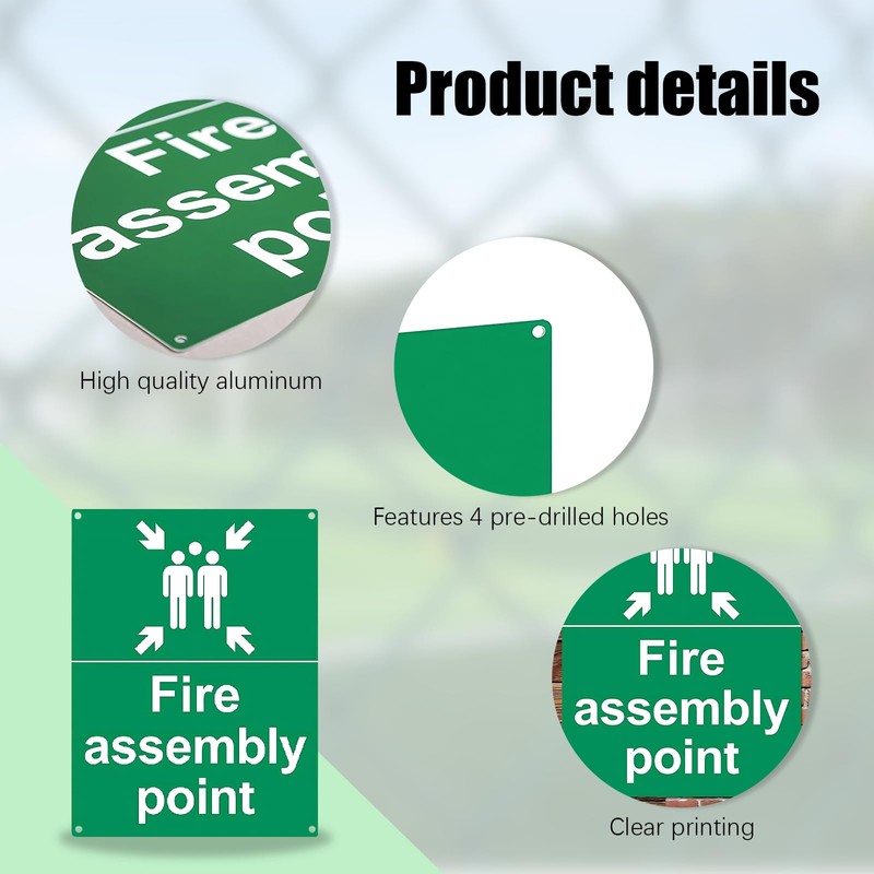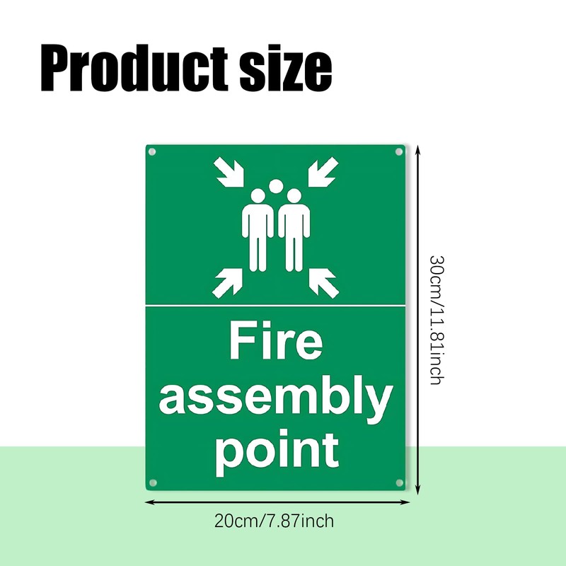 This 300x200mm plastic fire assembly point sign is made of durable aluminum and is suitable for indoor and outdoor use. It is used to mark emergency assembly areas, convey safety information and action instructions, and is easy to install and can be fixed to a variety of surfaces. The stylish and modern design, bright green color, is beautiful and practical, and is widely used in various outdoor places.