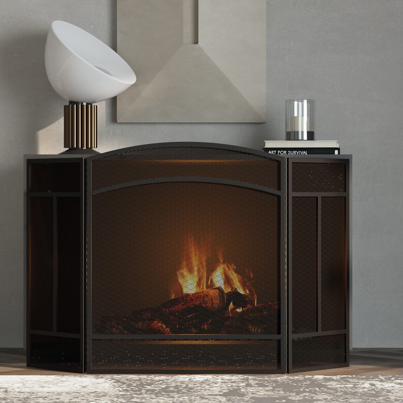 - MODERN CONTEMPORY DESIGN:3 panel screen arched top almost matches with your home deco, gas fireplace, fireplace tools, fireplace grate and holders accessories.