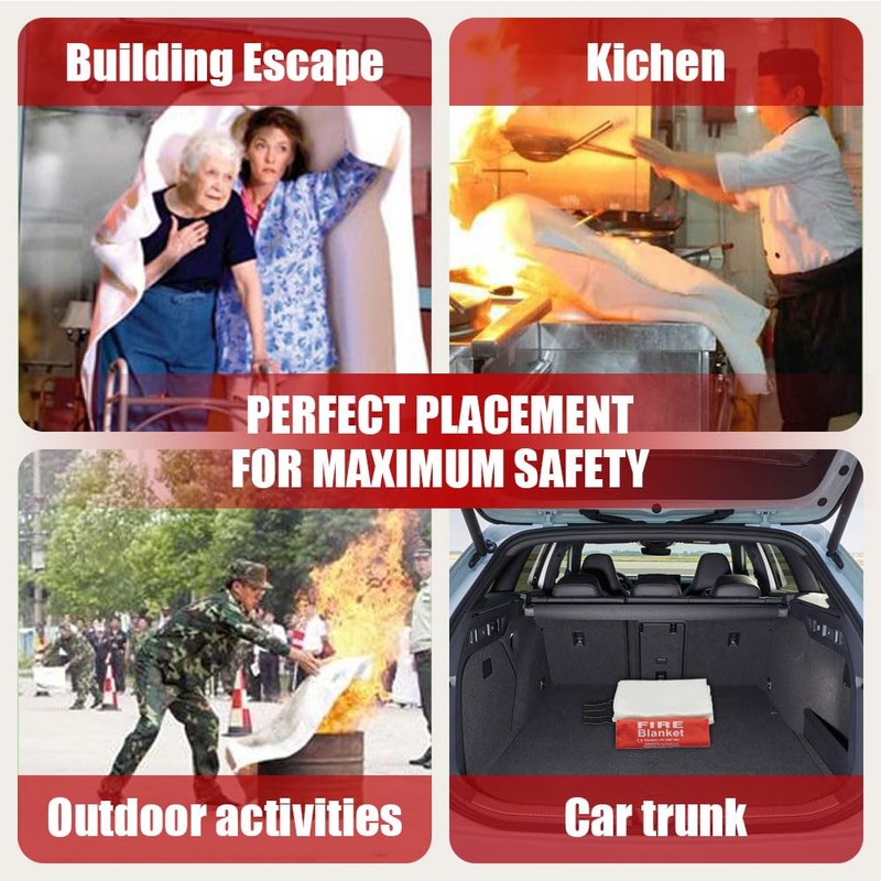 - Versatile Use: Perfect for a range of indoor and outdoor settings such as homes, kitchens and camping, the fire Blanket is designed for maximum safety and reliability. Equipped with convenient pull strips for quick deployment, it’s easy to dispose of after use, providing peace of mind during emergencies.