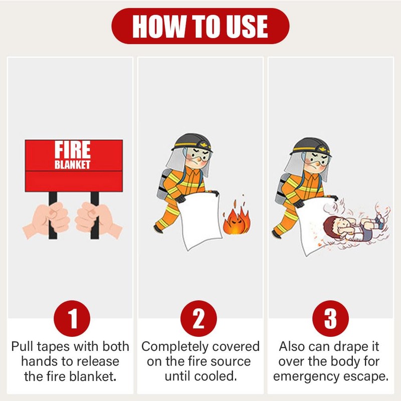 - Easy to Use:Just pull down the pull - strips on the fire blanket and spread it over the flame to smother it, and then turn off the heat source.In addition, in the event of a fire, this multi - functional tool can also serve as a personal protective shield. It has a hole slot, so it can also be easily hung on the wall. Easy to use for anyone.