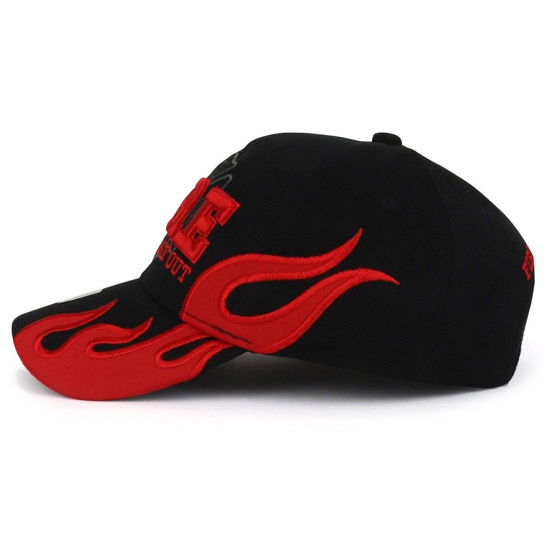 Fire Department - First in Last Out Fireman Officer Gear Uniform Baseball Cap Hat Adjustable, Red & Flame, One Size