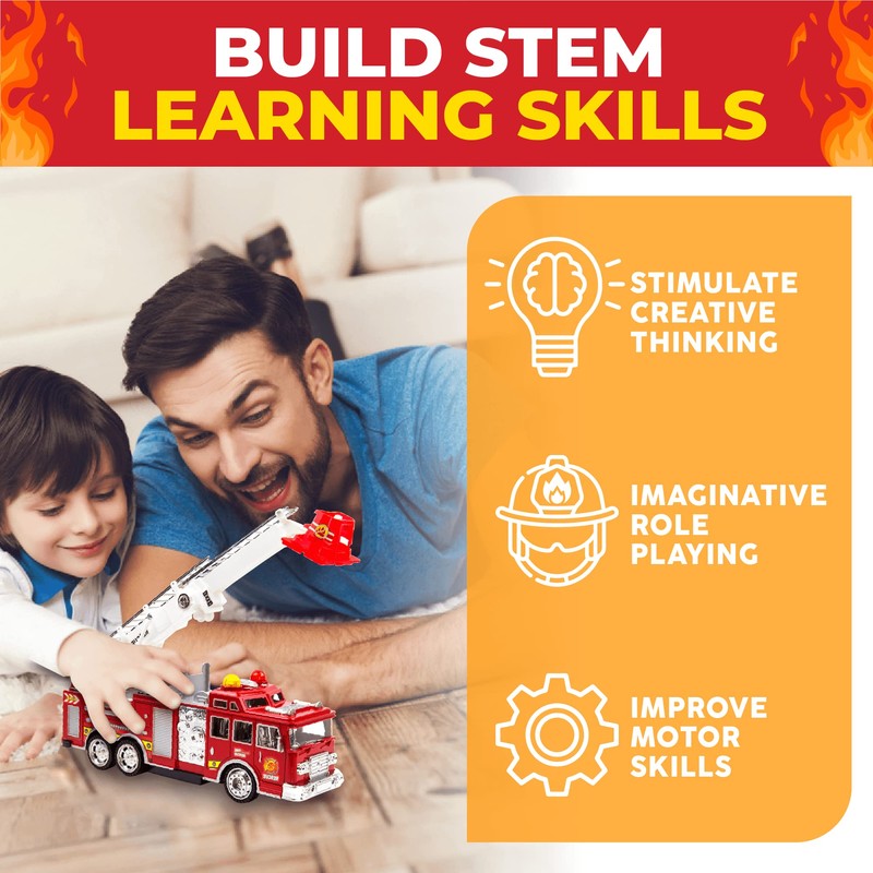 - Lights and Sounds : Fire engine truck toy with beautiful flashing lights siren sounds and vocal phrases while running.