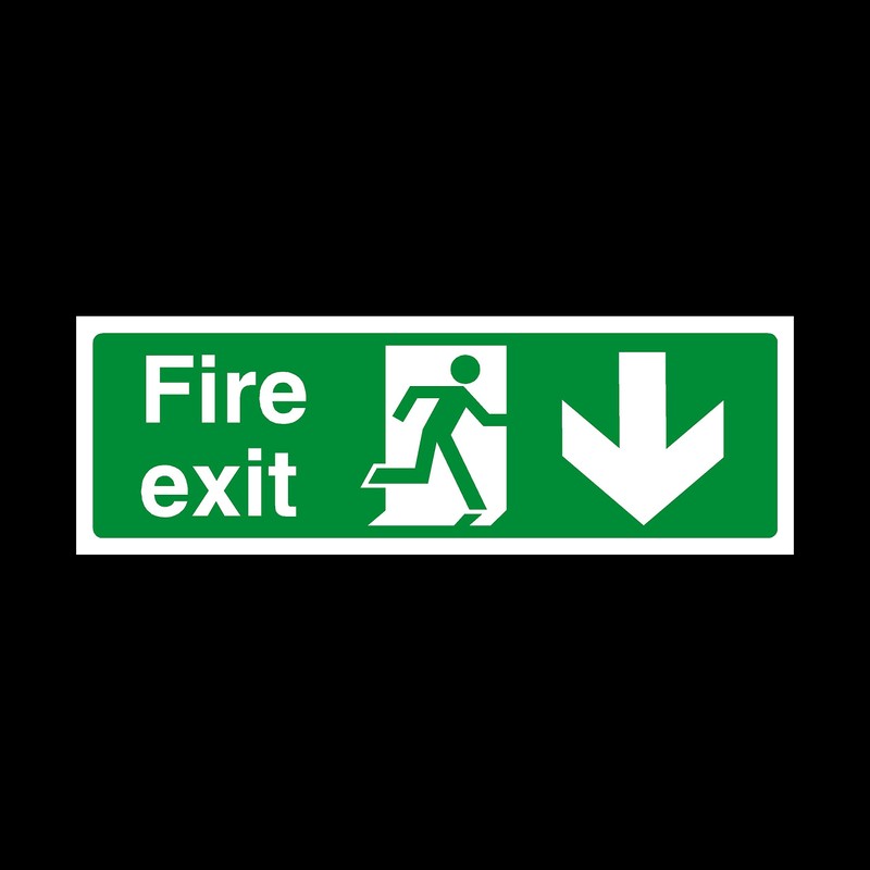 Fire Exit Arrow Down Sign 300mm x 100mm - Plastic Sign
