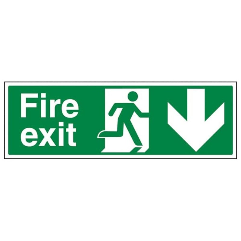 Fire Exit - Fire Exit Arrow Down - 300 X 100mm Restickable Safety Sign
