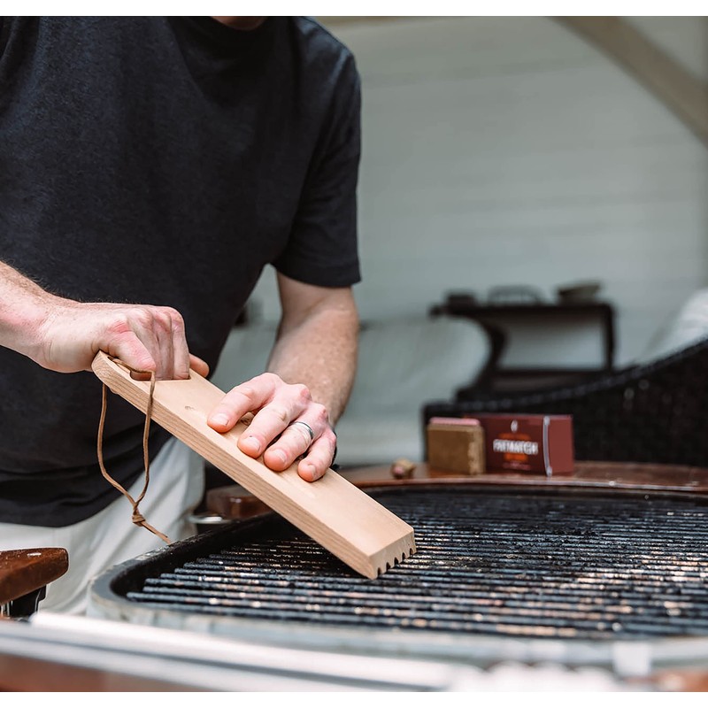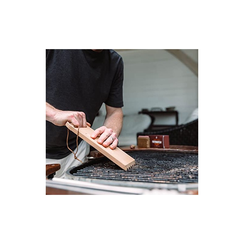 - SAFE AND NATURAL GRILL SCRAPER: Keep your grill clean without the risk of metal bristles or shards with our grill wood scraper. It's made from all-natural hardwood with sturdy grooves that scrape and clean even the toughest spots.