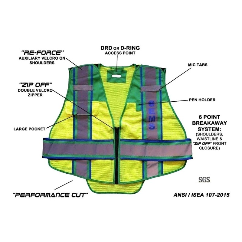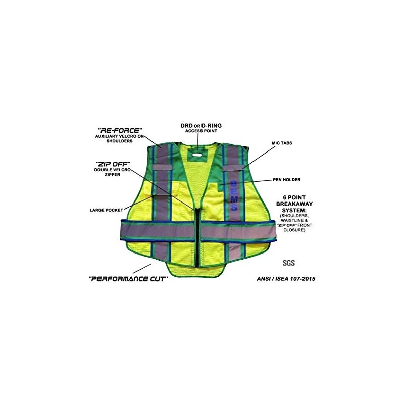 FIRE NINJA - Ultrabright Safety EMS Vest | Class 2 Reflective - High Visibility - Double Breakaway Zipper (Green, Regular)