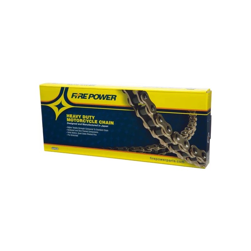 Fire Power™ was created by people with over 50 years of experience living and breathing in the power sports industry. Fire Power™ believes in sourcing the highest grade materials possible for their products and value quality craftsmanship more than anything. With a full line of products in stock including batteries, chains, electrical components, along with forward and rear controls, Fire Power™ has everything you need to fuel your adrenaline rush. Fire Power Heavy Duty 520x120 Chain was designed and built with durability and quality in mind to provide a greater value over OEM products.