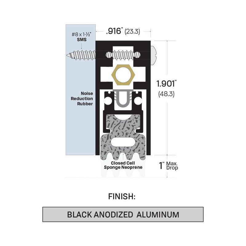 Fire Rated/Heavy Duty/Surface Automatic Door Bottom with Sponge Neoprene Rubber Extrusion in Black Anodized Aluminum (7163BK), SMS #8 x 1-1/2'' Supplied, (32'' L x 29/32'' W x 1-29/32'' H)