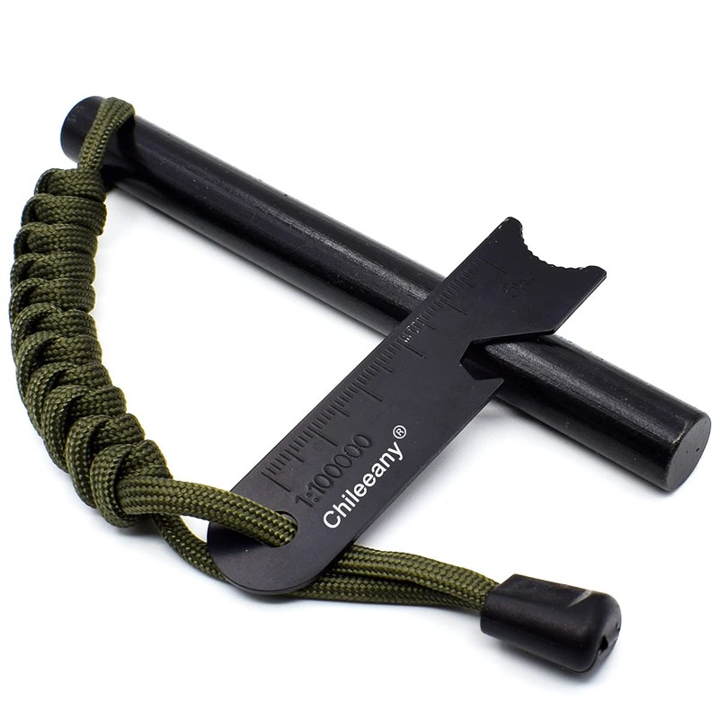 • 3. Size: Total Length: 5.1 inches (130 mm), Rod Diameter: 0.5 inches (13 mm), Blade with Scale: 3.0 x 0.8 inches (7.5 x 2 cm), Material: Ferrocerium, Magnesium Alloy, Weight: 4.3 oz (110 g); Chileeany Storage Bag: An original storage bag is also available for easy carrying. Size: 2.8 x 5.9 inches (7