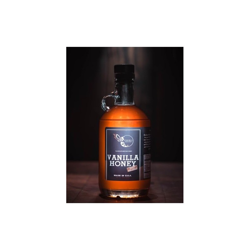 - Vanilla Honey is the perfect dessert finish or coffee/tea enhancer, making each cup a gourmet experience. Elevate your pancakes and more with this rich, handmade honey, infused with Grade A Vanilla Beans. Our labor-intensive process involves splitting and scraping 30 beans per gallon for maximum flavor. Available in a 19oz premium glass moonshine bottle or a 12.9oz economical squeeze bottle. Indulge in the exquisite taste of our Vanilla Honey!