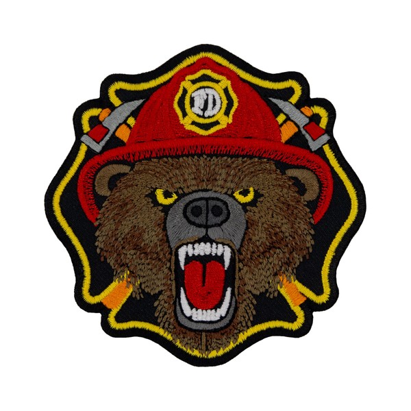 Firefighter Bear Embroidered Patch Iron On – Fierce Bear with Fire Helmet Des...