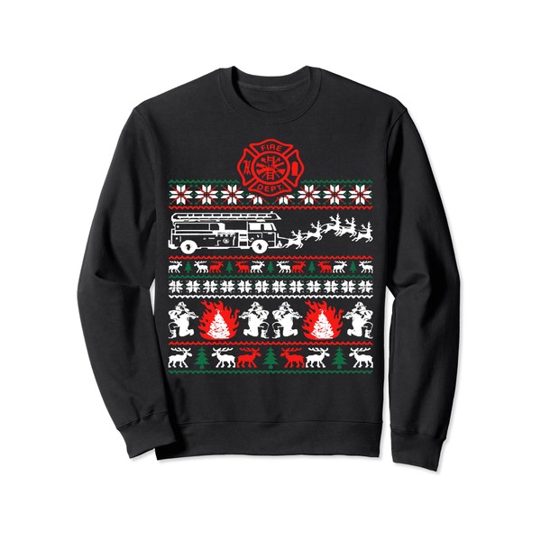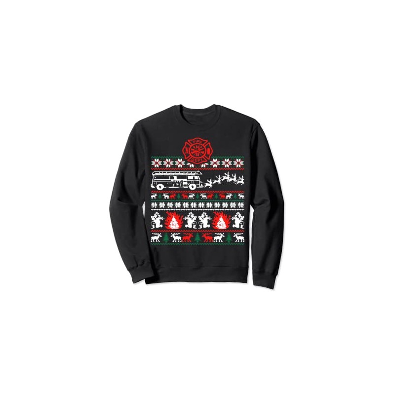 • Firefighter Ugly Christmas Sweater Funny Fireman Fire Truck. This Christmas shirt features Reindeer Fire Truck and Xmas lights, will be a funny Christmas tee for the Firefighter in your life.