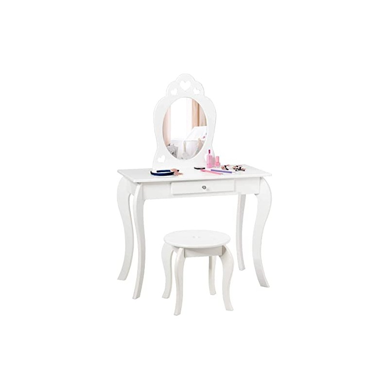 Fireflowery Kids Vanity Set, 2 in 1 Detachable Princess Makeup Table w/ Stool, Princess Makeup Play Set with Oval Mirror & Large Drawer, Pretend Beauty Vanity Set for Girls (White)