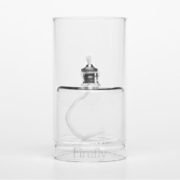 Firefly Fuels Refillable Glass Candle - Ethereal Reusable Oil Candle - 4.5” Hurricane Lantern for Restaurant Ambience, Indoor Lighting and Outdoor Events. Use with Liquid Paraffin or Lamp Oil