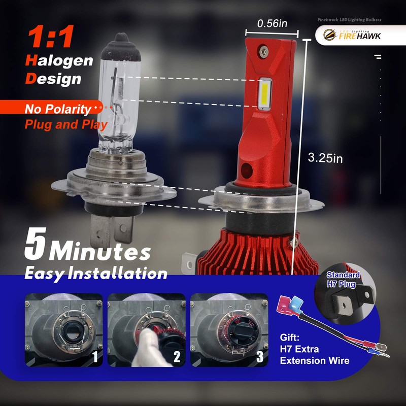 - 【Last Over 50,000 Hours】 Most advanced cooling system ever: 2mm thickened red copper, 40pcs aviation aluminum heat sinks, 12,000RPM silent turbofan, these improved construction techniques and materials make the Firehawk bulbs last 100× longer than your original bulbs.