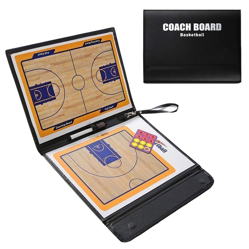 Firelong Basketball Coaching Board Coaches Tactics ClipBoard Kit, Tactical Layout Notebook, PU Leather Cover, Dry-Erase Strategy Magnetic Clipboard with NotePage (Black)