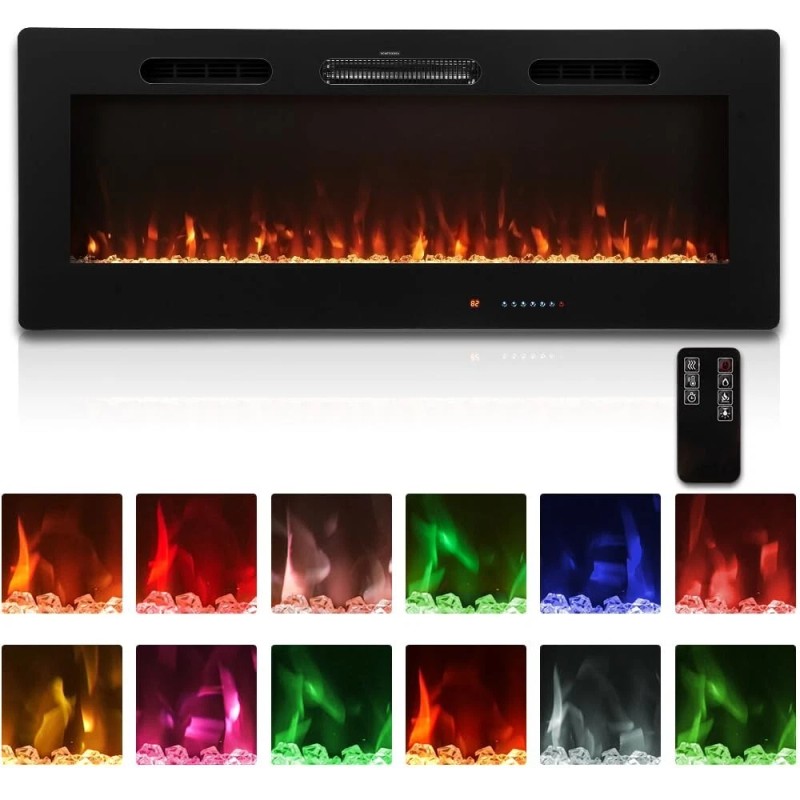 Fireplace 36" Electric Fireplace Recessed/Wall Mounted, 12 Colors, Touch & Remote Control - 60"
