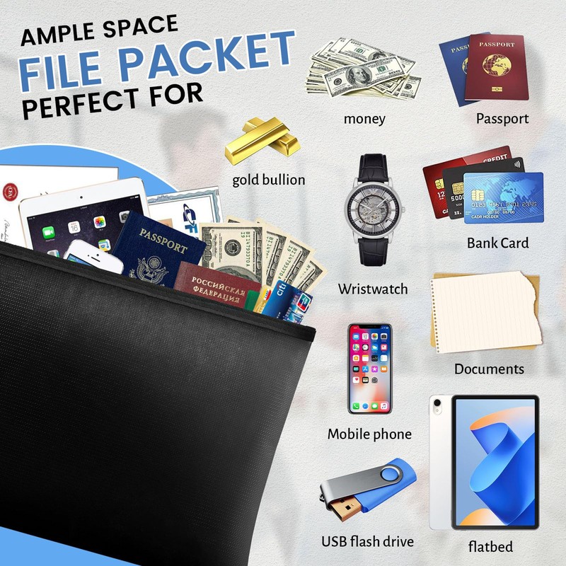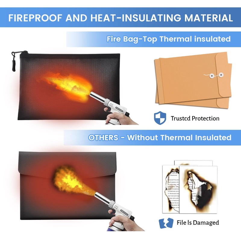 - 【Premium Fire-Resistant Materials】The fireproof document bags are carefully made of flame retardant wire and fireproof wrapping to prevent fire damage to the wrapping edge, to ensure that the fireproof waterproof file bag has 360°all-round fire protection, and has better fire protection effect than the ordinary file fireproof bag.