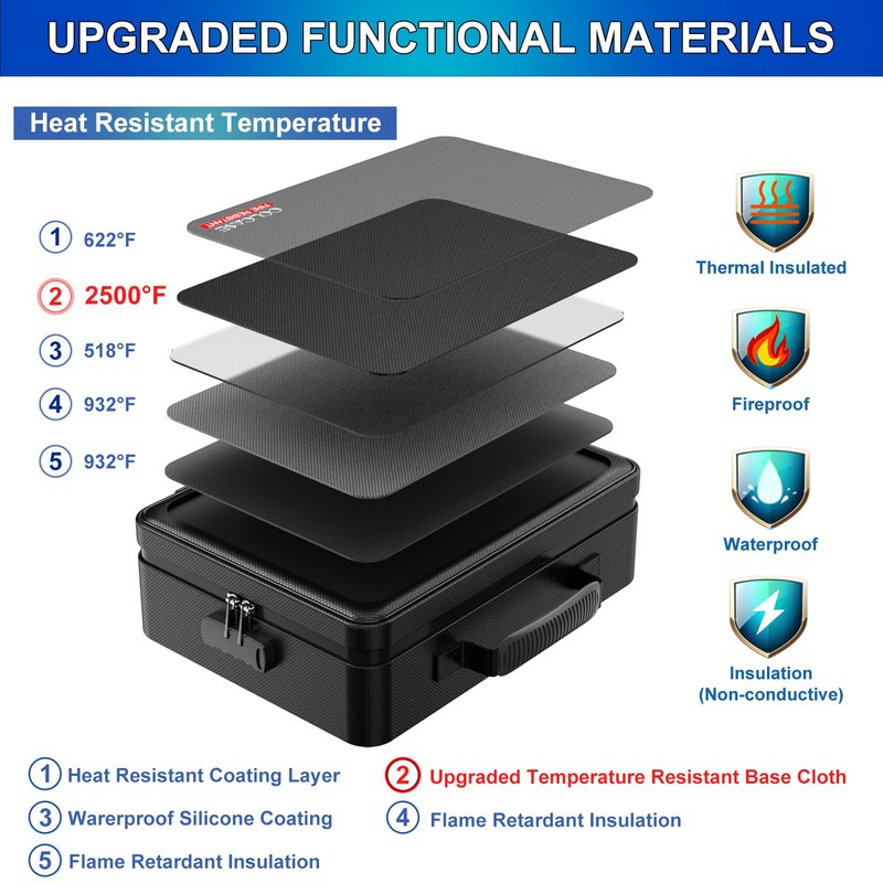 - 100% Fireproof Document Bag – Colcase fireproof bag is made of 5 layers high quality fire retardant materials silicone coated fiberglass fireproof safe bag which stands up against the fire and heat up to 5200℉.