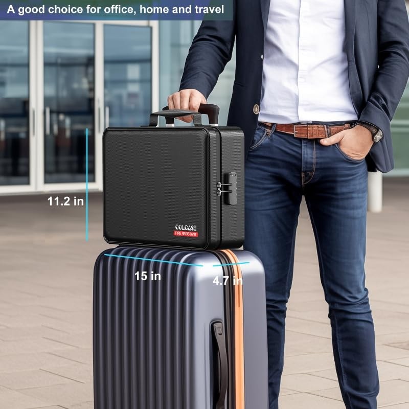 - Multiple User Friendly Design Safe - File safe bag design with a strong grab handle to carry the fireproof document bag easily ; 2 way waterproof zippers make it easier to open and close file bag ; combination locks are designed to make your valuables safer and wider strap handle design on the back allows you to insert a suitcase handle.