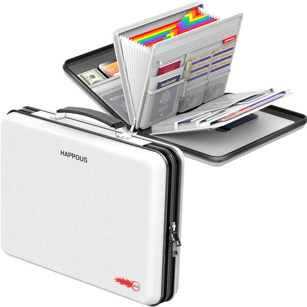 HAPPOUS Fireproof File Organizer, Expanding File Organizer with 13 Pockets, Portable Fireproof Document Box Hard-Shell Document Organizer Storage for Documents Laptop Passports cards Gray