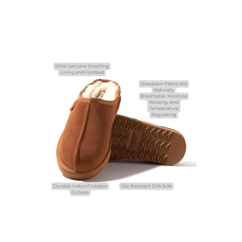 - INDOOR/OUTDOOR: All-natural conditioning properties work in concert with our tried-and-true durable, lightweight, indoor/outdoor EVA outsoles to put the finishing touches on these luxe shearling slippers.