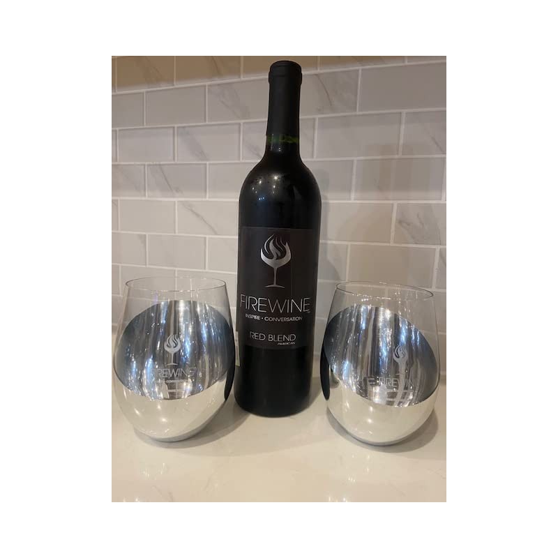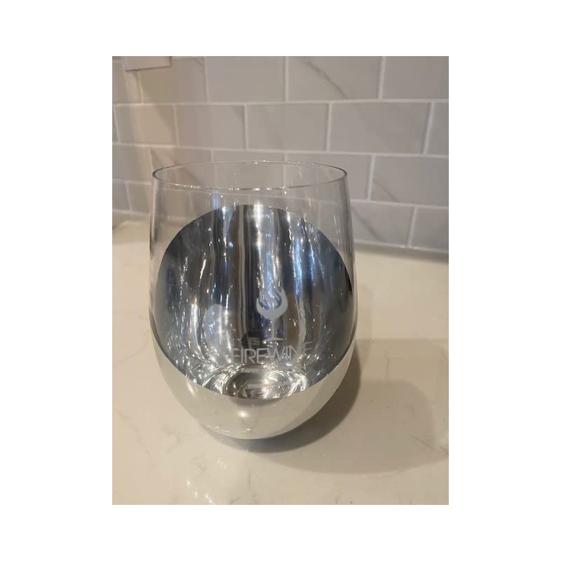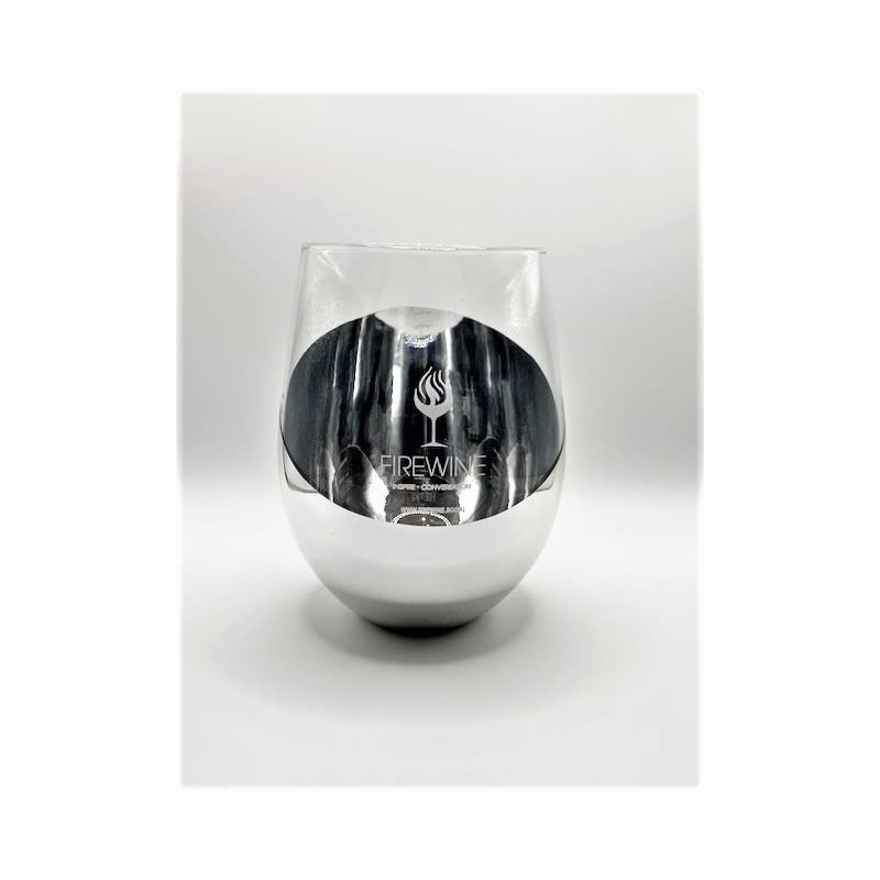 Firewine WINE GLASS - SILVER STEMLESS, Modern Silver Stemless Wine Glass, Silver Metallic Bottom Angled Design